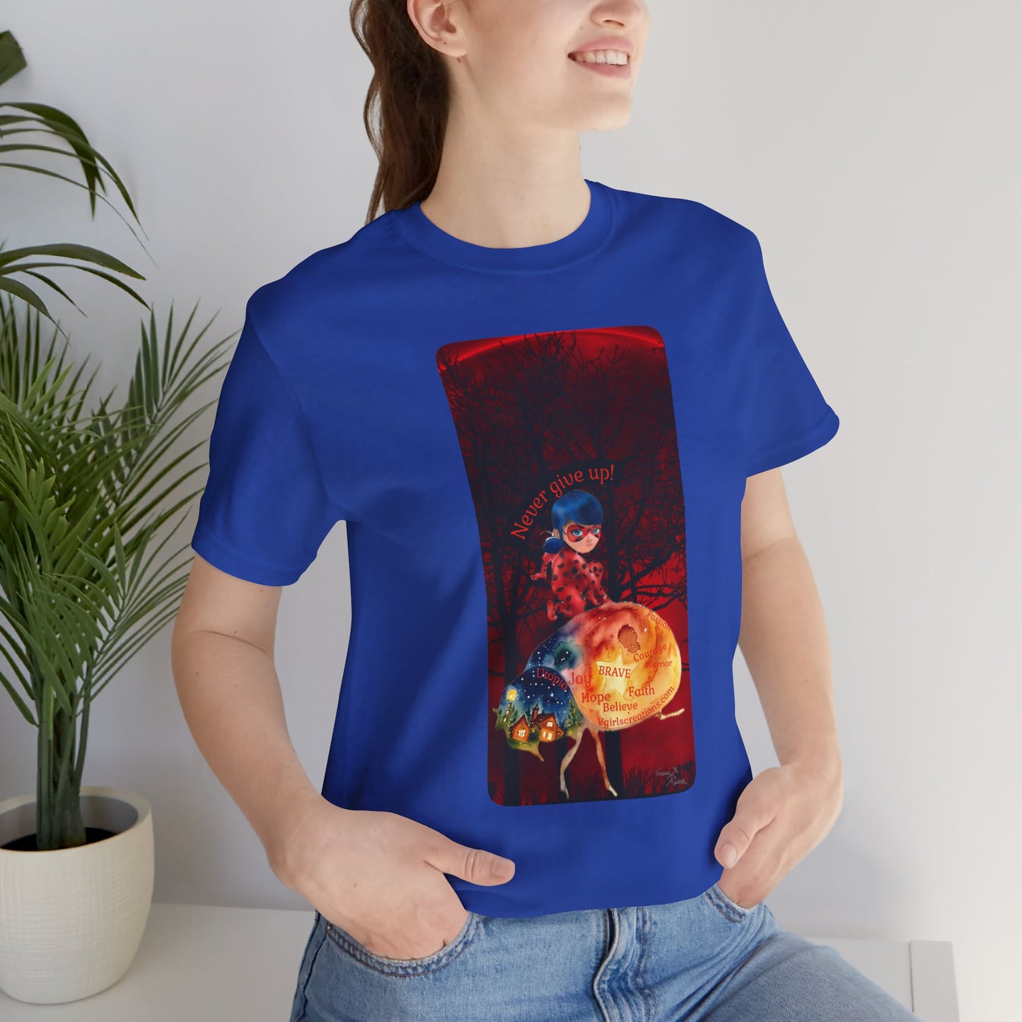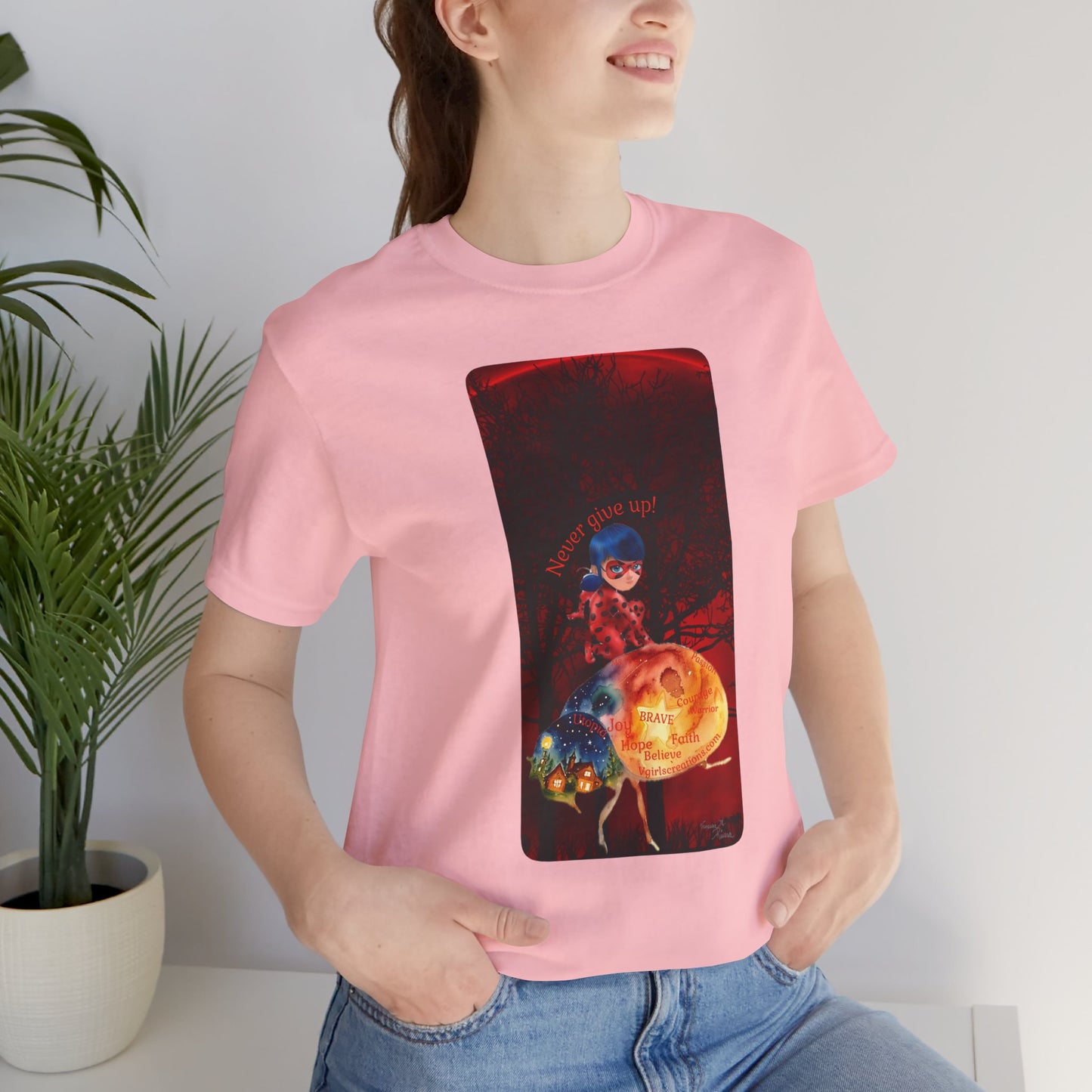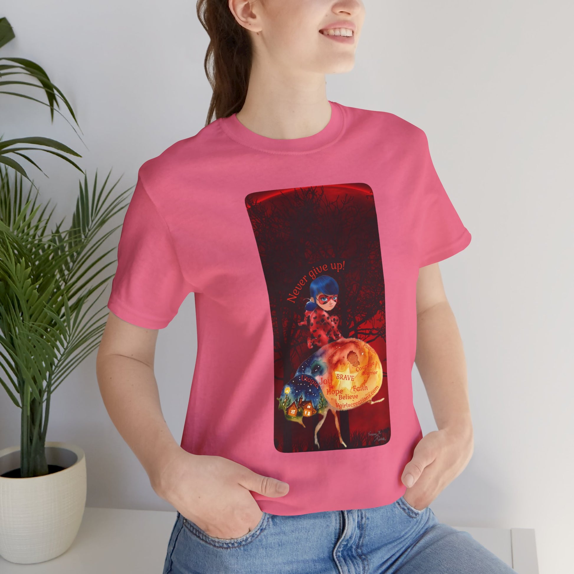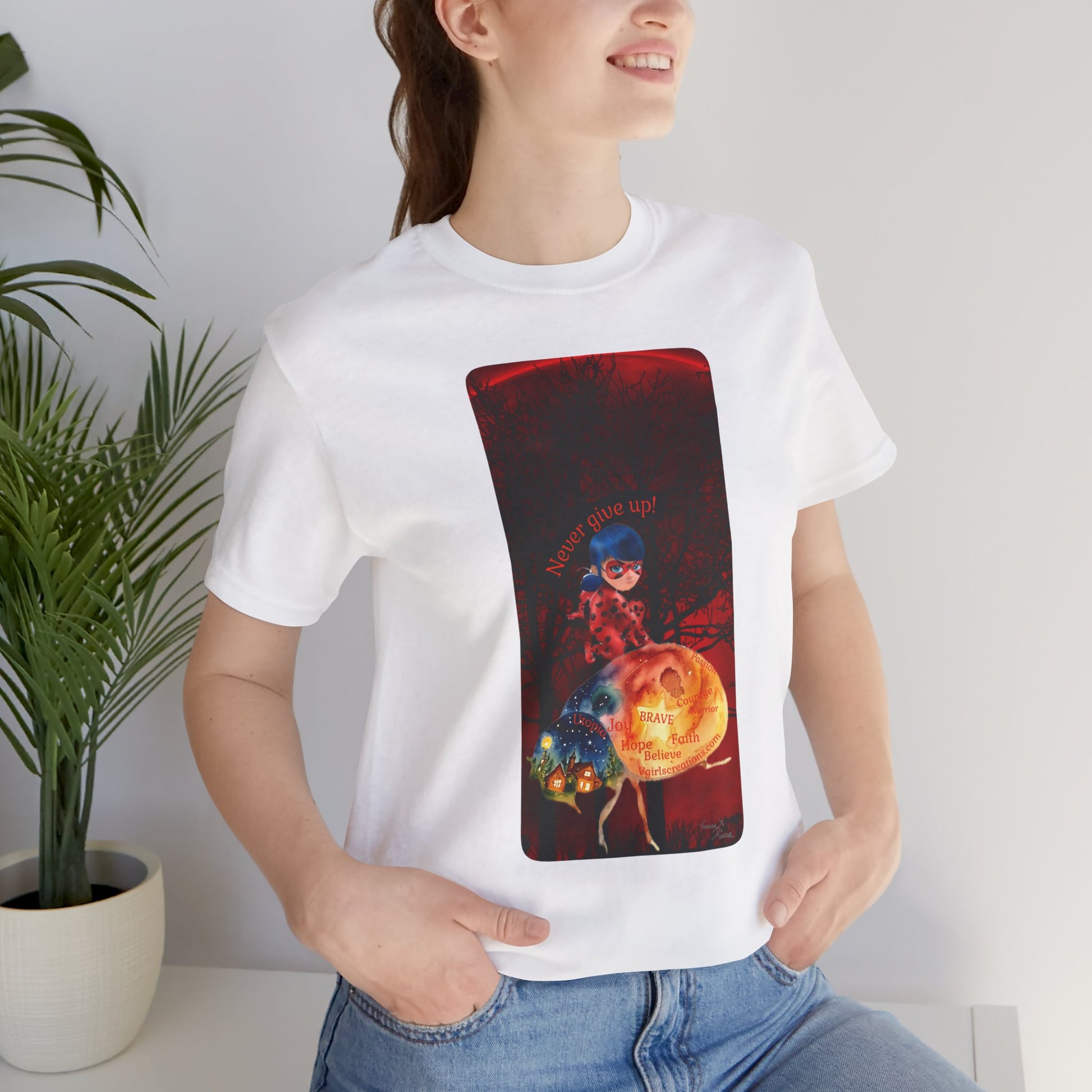 This classic unisex jersey short sleeve tee fits like a well-loved favorite. Soft cotton and quality print make users fall in love with it over and over again. These t-shirts have-ribbed knit collars to bolster shaping. The shoulders are tapered for a better fit over time. Dual side seams hold the garment's shape for longer.