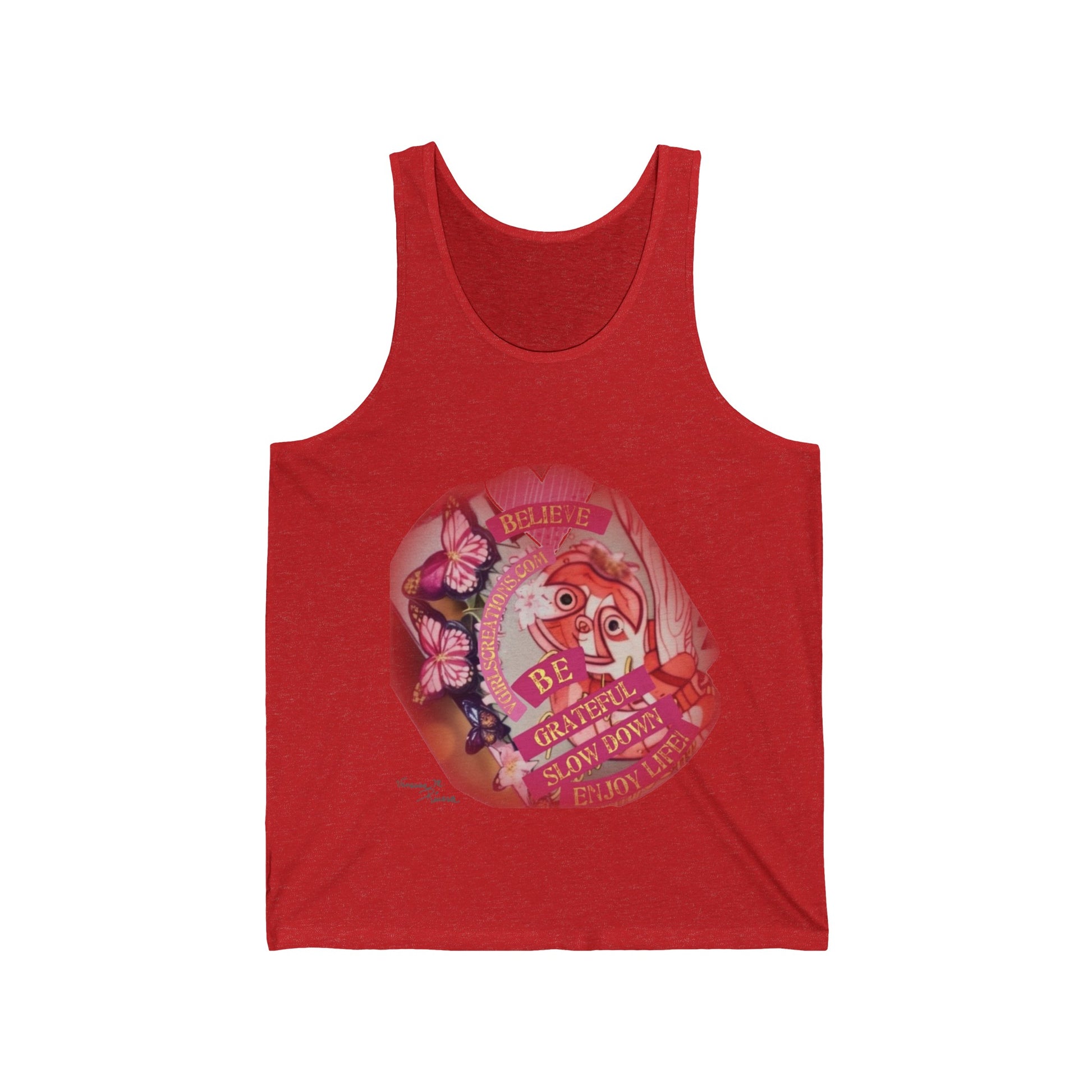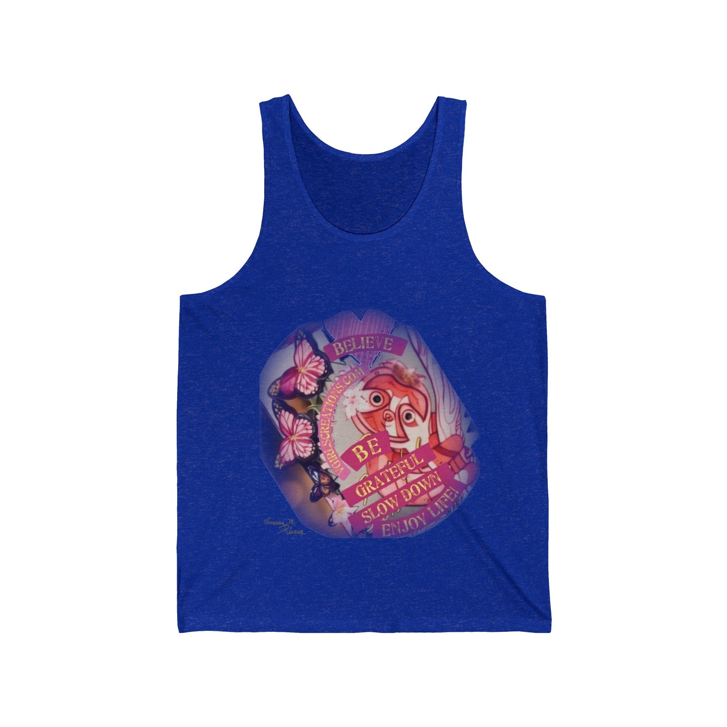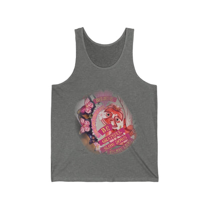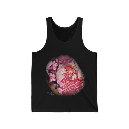 This must-have unisex jersey tank top fits like a well-loved favorite. High quality print makes it an ultimate statement shirt for years to come. This item has side seams to provide structural support. All bindings are the same fabric as the rest of the tank. Depending on the color, cotton, polyester, or rayon can appear.