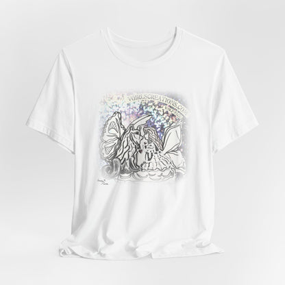 This classic unisex jersey short sleeve tee fits like a well-loved favorite. Soft cotton and quality print make users fall in love with it over and over again. These t-shirts have-ribbed knit collars to bolster shaping. The shoulders are tapered for a better fit over time. Dual side seams hold the garment's shape for longer.